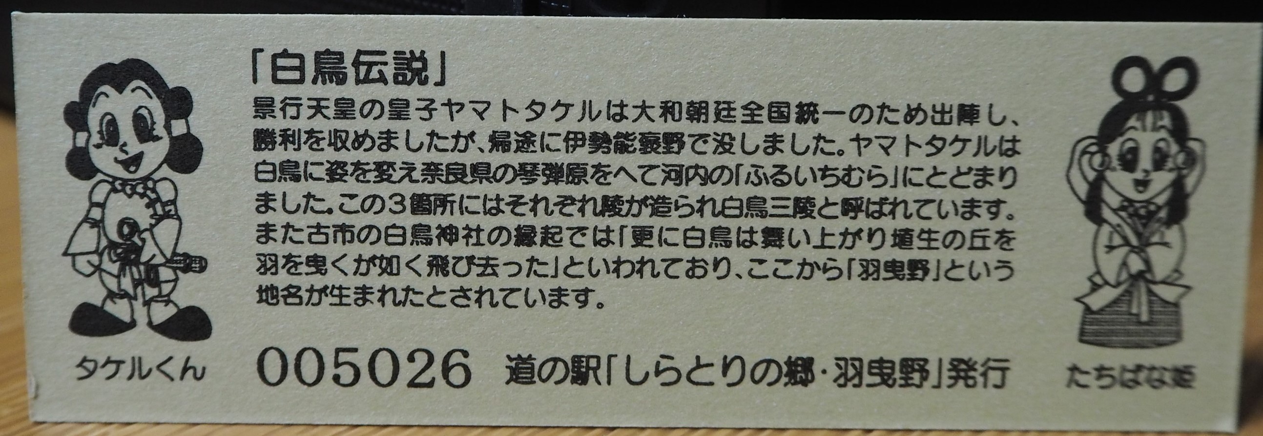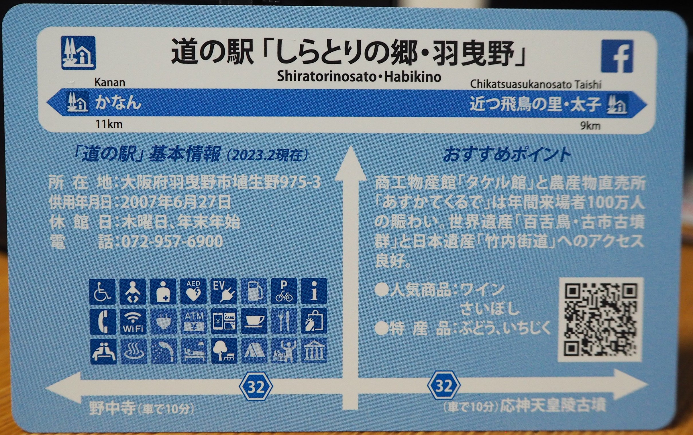 案内図 あすかてくるで タケル館 道の駅カード・切符販売場所 限定1 はびきのコロッケ 限定2 出し巻き卵 限定3 はびきのうどん 限定3 店舗メニュー 記念切符(表) 記念切符(裏) カード(表) カード(裏)