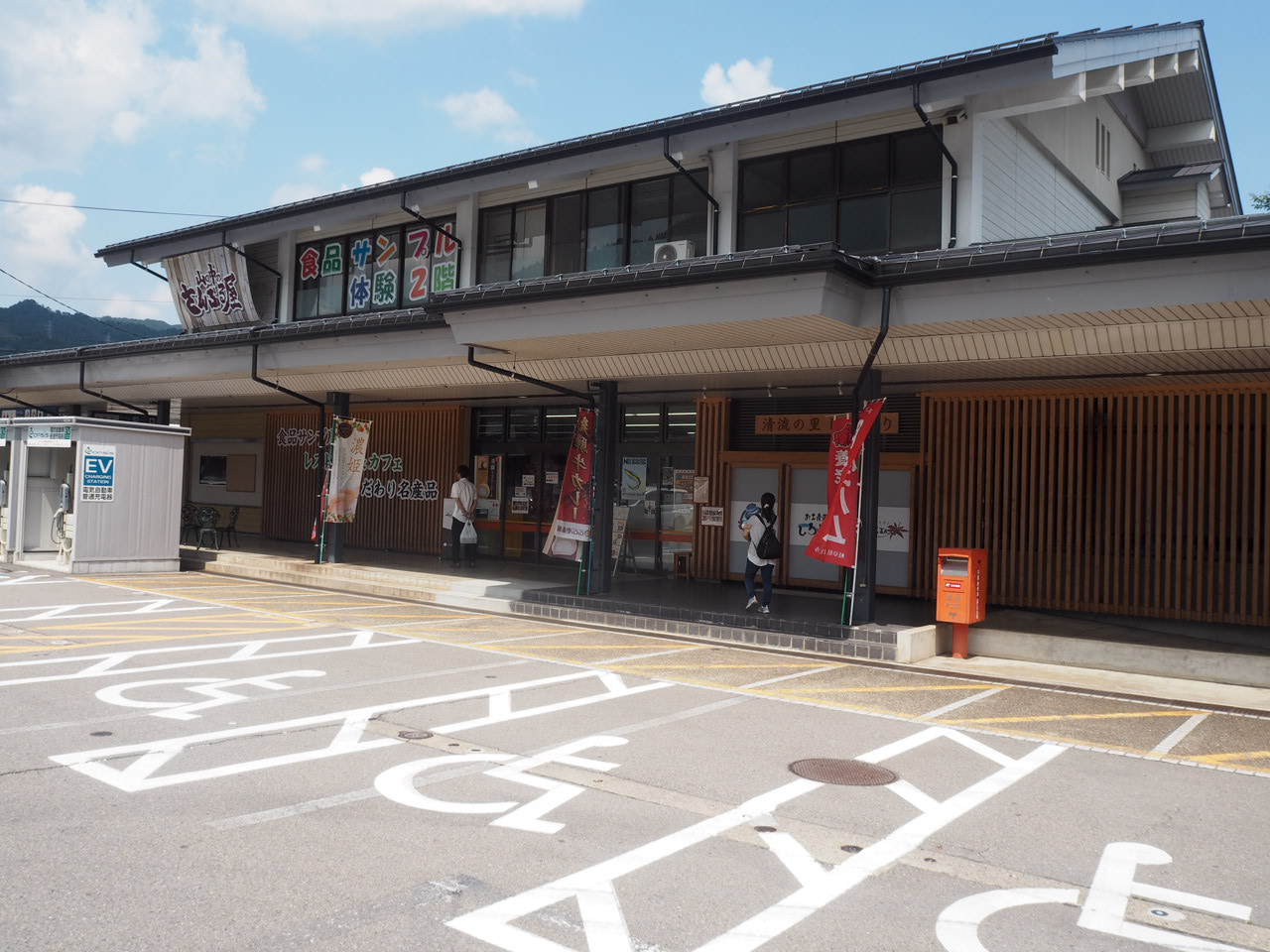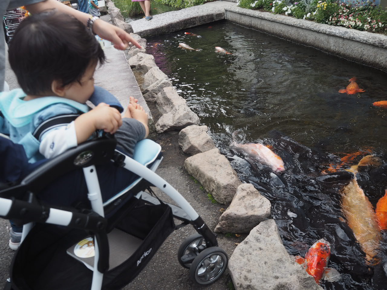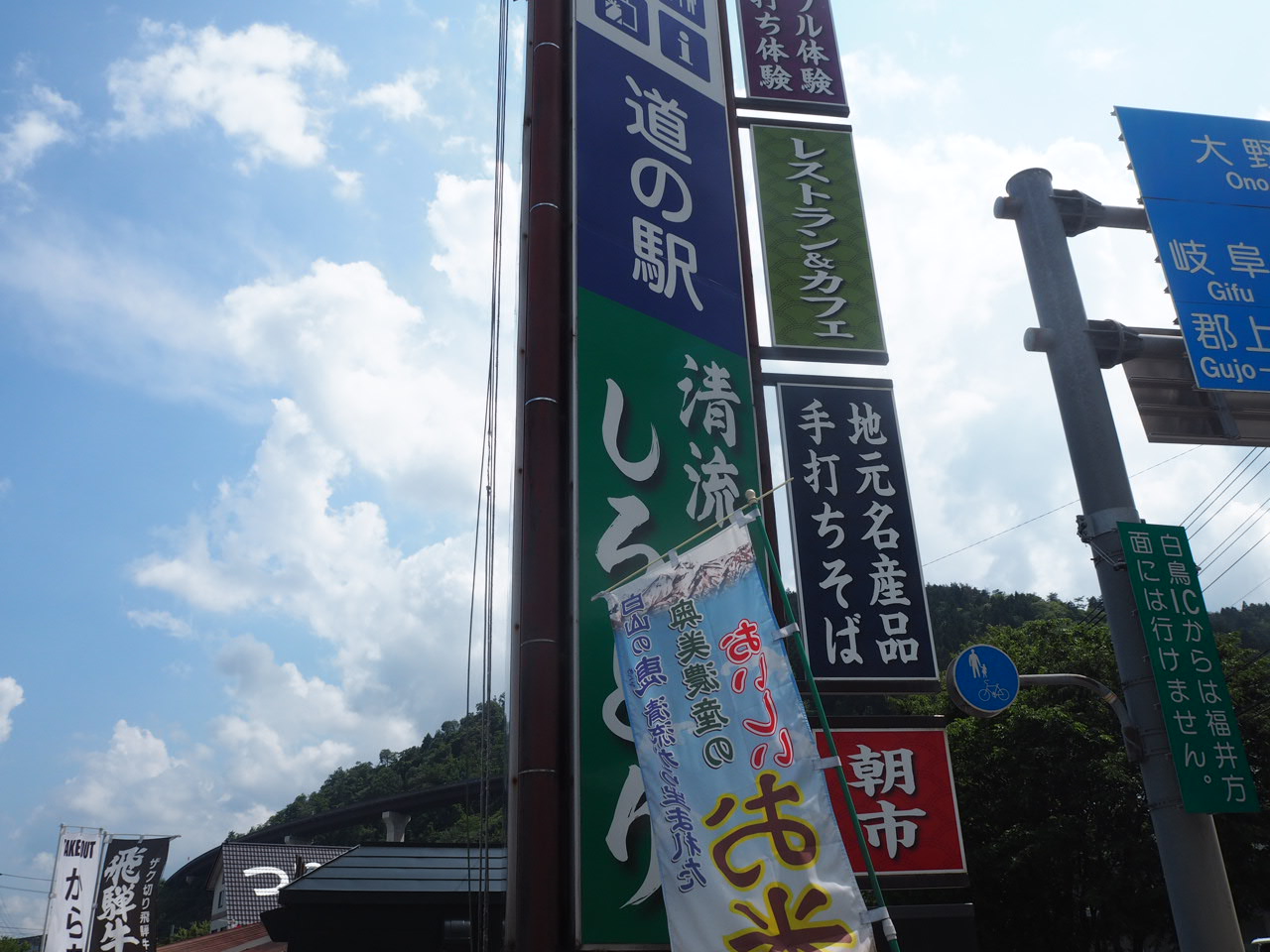 看板 隠れちゃった(-_-;) 名産品店 駐車場 人気の道の駅なのか、すごいいっぱいの車がありました 沢山の鯉とご対面 こんなに沢山の鯉を見るのは初めてなのでいっぱい見て、手を伸ばして捕まえようとしていました(笑)